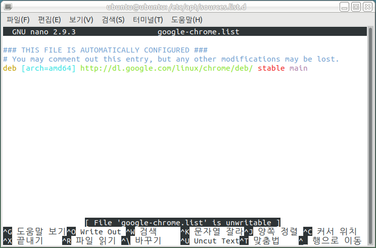 ubuntu@ubuntu:~$ sudo nano /etc/apt/sources.list.d/google-chrome.list
