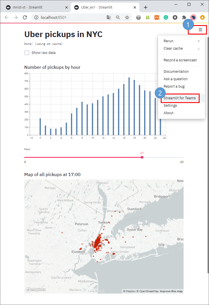 streamlit runs uber_pickups.py