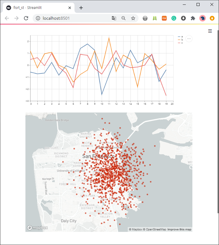 3. Streamlit의 기본 앱인 'hello world'앱 실행