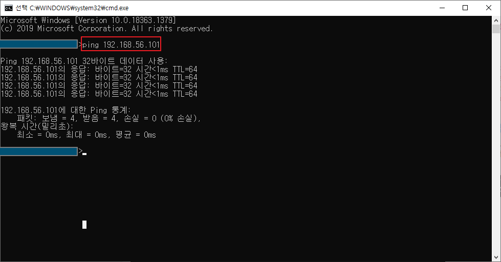 6. 호스트에서 게스트의 어댑터 2에 ping을 하면 게스트가 응답을 보낸다.