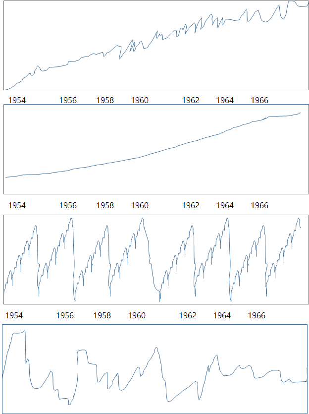 ① 경향(Trend) ② 계절성 ③ 예측 ④ 잔차
