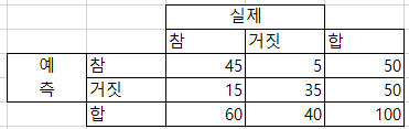 ● confusion matrix에서 설명이 틀린 것 찾는 문제?