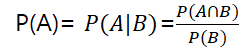 | 곱사건의 확률 | P(A∩B) = P(A|B)P(B) = P(B|A)P(A) P(A∩B) = P(A)P(B) (A와 B가 mutually exclusive) |