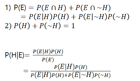 P(H|E), 사후 확률(posterior probability): 결과(E)가 발생했다는 가정하에서 원인(H)가 발생했을 확률