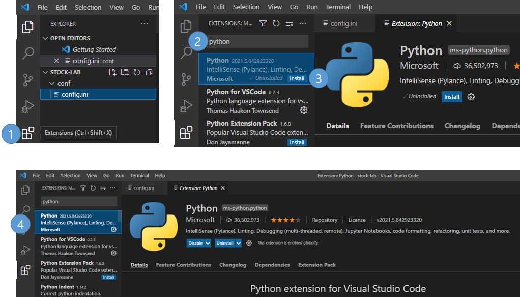 2. python을 검색하면 다양한 파이썬 도구가 나타난다.