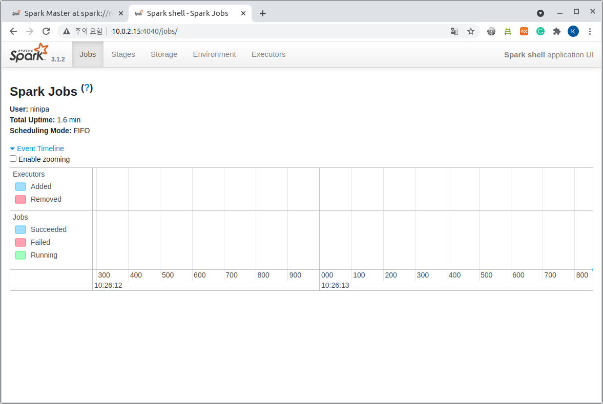 | 문법: start-worker.sh spark://hostname:port 명령: start-worker.sh spark://ninipa-VirtualBox:7077 |