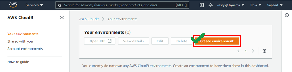 1. AWS Cloud9 콘솔에 로그인