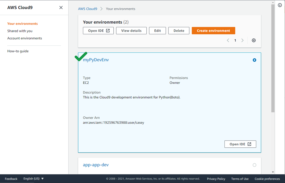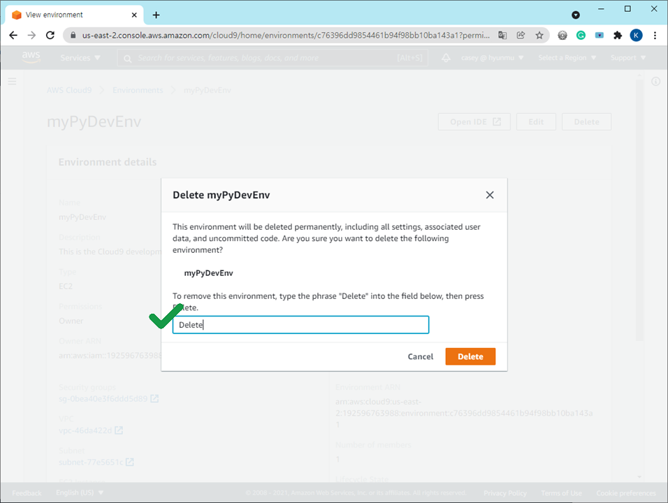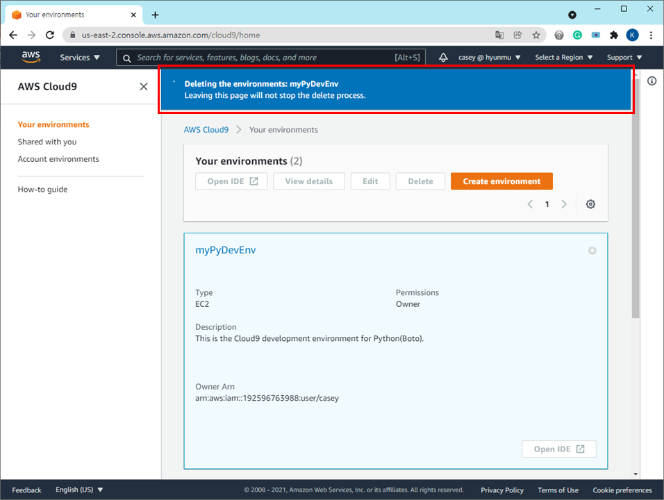 AWS Cloud9에서 환경 삭제