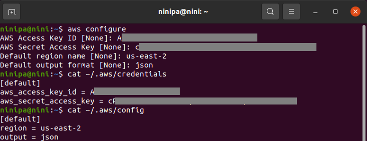 | [default] region = us-east-2 output = json |
