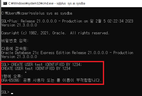 [ORA-65096: 공통 사용자 또는 롤 이름이 부적합합니다.]란 오류로 계정을 만들 수 없다.