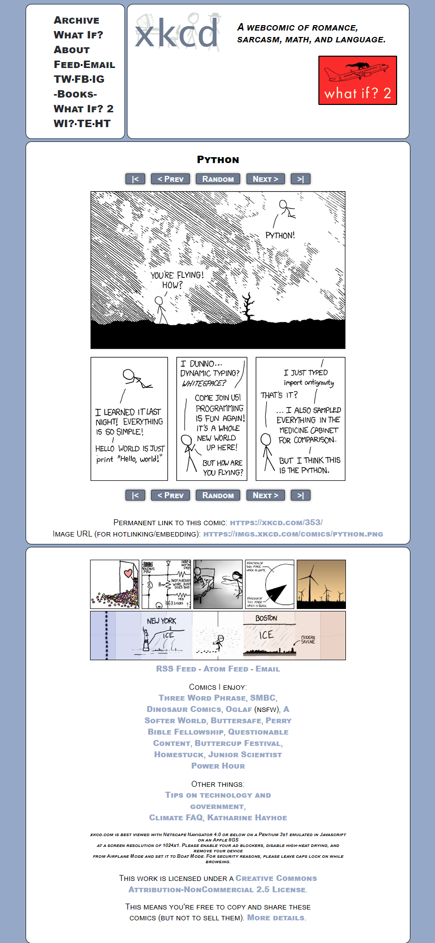 "import antigravity"를 실행하면 xkcd 코믹에서 유래한 웹페이지가 열린다.